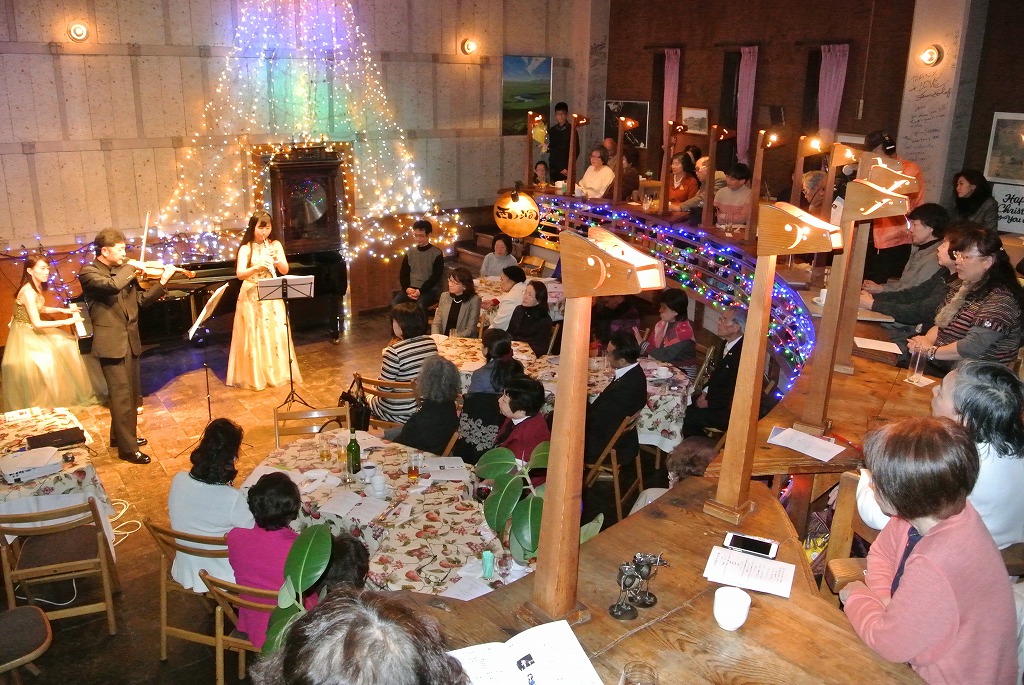 講演会後、ご来聴下さったお客様向け演奏会の様子です。張り詰めた講演会の雰囲気から、フッとリラックスして楽しんで頂けるとご好評を頂いております。
